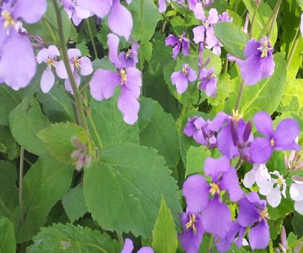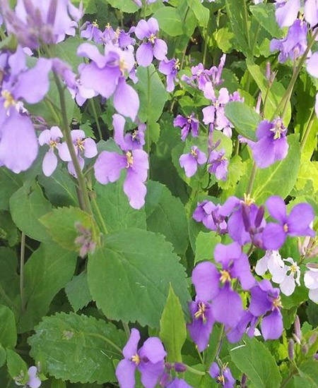 十字花科,諸葛菜屬一年或二年生草本植物,高可達(dá)50厘米,無毛;莖直立,基生葉及下部莖生葉大頭羽狀全裂,頂裂片近圓形或短卵形,側(cè)裂片卵形或三角狀卵形,葉柄疏生細(xì)柔毛;花紫色、淺紅色或褪成白色,花萼筒狀,紫色,花瓣寬倒卵形,密生細(xì)脈紋,長角果線形,種子卵形至長圓形,黑棕色,4-5月開花,5-6月結(jié)果。