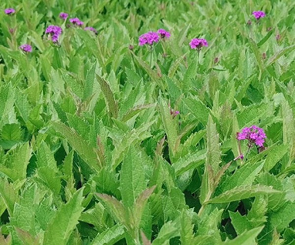 馬鞭草,多年生直立草本植物,高可達(dá)120厘米,基部木質(zhì)化,單葉對生,卵形至長卵形,兩面被硬毛,下面脈上的毛尤密。頂生或腋生的穗狀花序,花藍(lán)紫色,無柄,花萼膜質(zhì),筒狀,花冠微呈二唇形,花絲短;子房無毛,果包藏于萼內(nèi),小堅(jiān)果?;ü?-10月。
