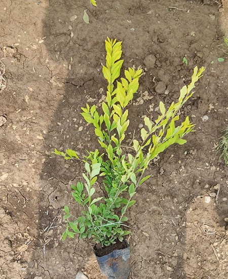 金葉女貞(學名:Ligustrum × vicaryi Rehder)是木犀科女貞屬植物,是美國加州的金邊女貞與歐洲女貞樹種雜交而成。落葉灌木,株高2-3米。其嫩枝帶有短毛。葉革薄質(zhì),單葉對生。新葉金黃色,因此得名為金邊女貞,老葉黃綠色至綠色??偁罨ㄐ颍閮尚?;核果橢圓形,內(nèi)含一粒種子,顏色為黑紫色?;ㄆ?-6月,果期10月。喜光,稍耐陰,適應性強,抗干旱,病蟲害少,萌芽力強,生長迅速,耐修剪。葉色金黃,觀賞性較佳。盆栽可用于門廊或廳堂處擺放觀賞;園林中常片植或叢植,或做綠籬栽培。