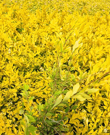 金葉女貞是美國加州的金邊女貞與歐洲女貞樹種雜交而成。落葉灌木,株高2-3米。其嫩枝帶有短毛。葉革薄質(zhì),單葉對生,橢圓形或卵狀橢圓形,先端尖,基部楔形,全緣。新葉金黃色,因此得名為金葉女貞,老葉黃綠色至綠色??偁罨ㄐ?,花為兩性,呈筒狀白色小花;核果橢圓形,內(nèi)含一粒種子,顏色為黑紫色?;ㄆ?-6月,果期10月。