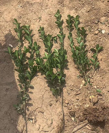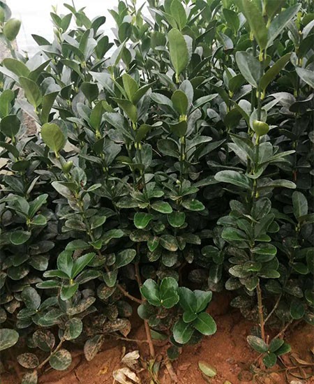 大葉黃楊(學(xué)名:Buxus megistophylla Levl.):灌木或小喬木,高0.6-2米,胸徑5厘米;小枝四棱形,光滑、無(wú)毛。葉革質(zhì)或薄革質(zhì),卵形、橢圓狀或長(zhǎng)圓狀披針形以至披針形,葉面光亮,僅葉面中脈基部及葉柄被微細(xì)毛,其余均無(wú)毛?;ㄐ蛞干ㄐ蜉S長(zhǎng)5-7毫米,有短柔毛或近無(wú)毛;苞片闊卵形,雄花8-10朵,雌花萼片卵狀橢圓形。蒴果近球形,長(zhǎng)6-7毫米,宿存花柱長(zhǎng)約5毫米,斜向挺出。花期3-4月,果期6-7月。 生于山地、山谷、河岸或山坡林下,海拔500-1400米。 大葉黃楊是優(yōu)良的園林綠化樹種,可栽植綠籬及背景種植材料,也可單株栽植在花境內(nèi)。